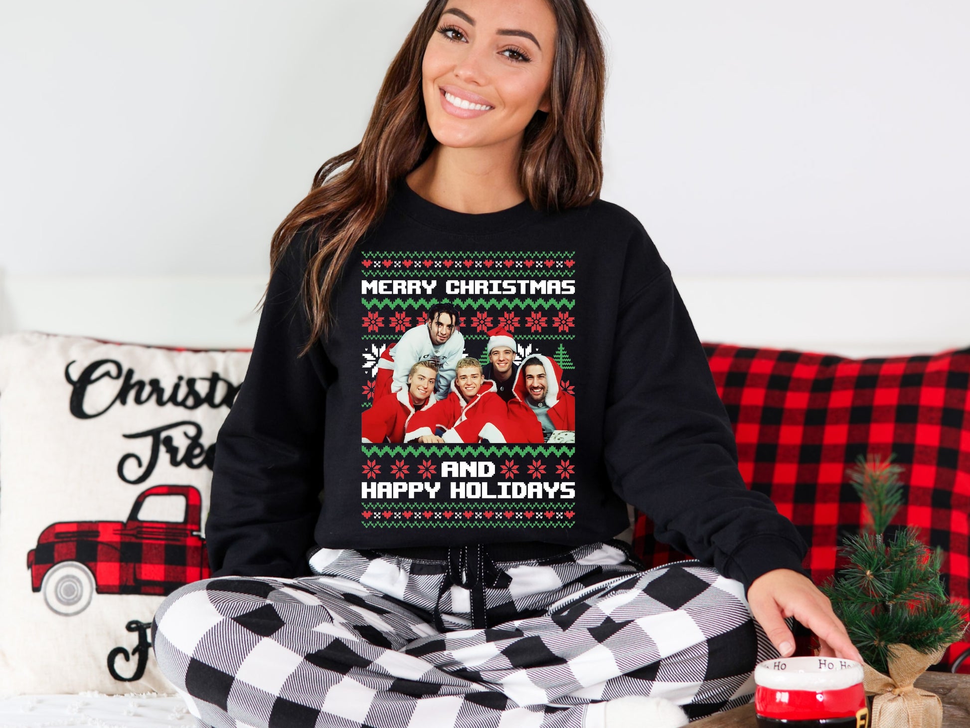 Celebrate the holidays with a nostalgic twist in the N'Sync Retro Christmas ugly crewneck sweatshirt. Featuring the fun 90’s boy band design, this cozy sweatshirt brings classic holiday cheer and playful style together. Perfect for fans and festive gatherings, it’s a warm and happy way to spread Christmas spirit with a retro vibe.
