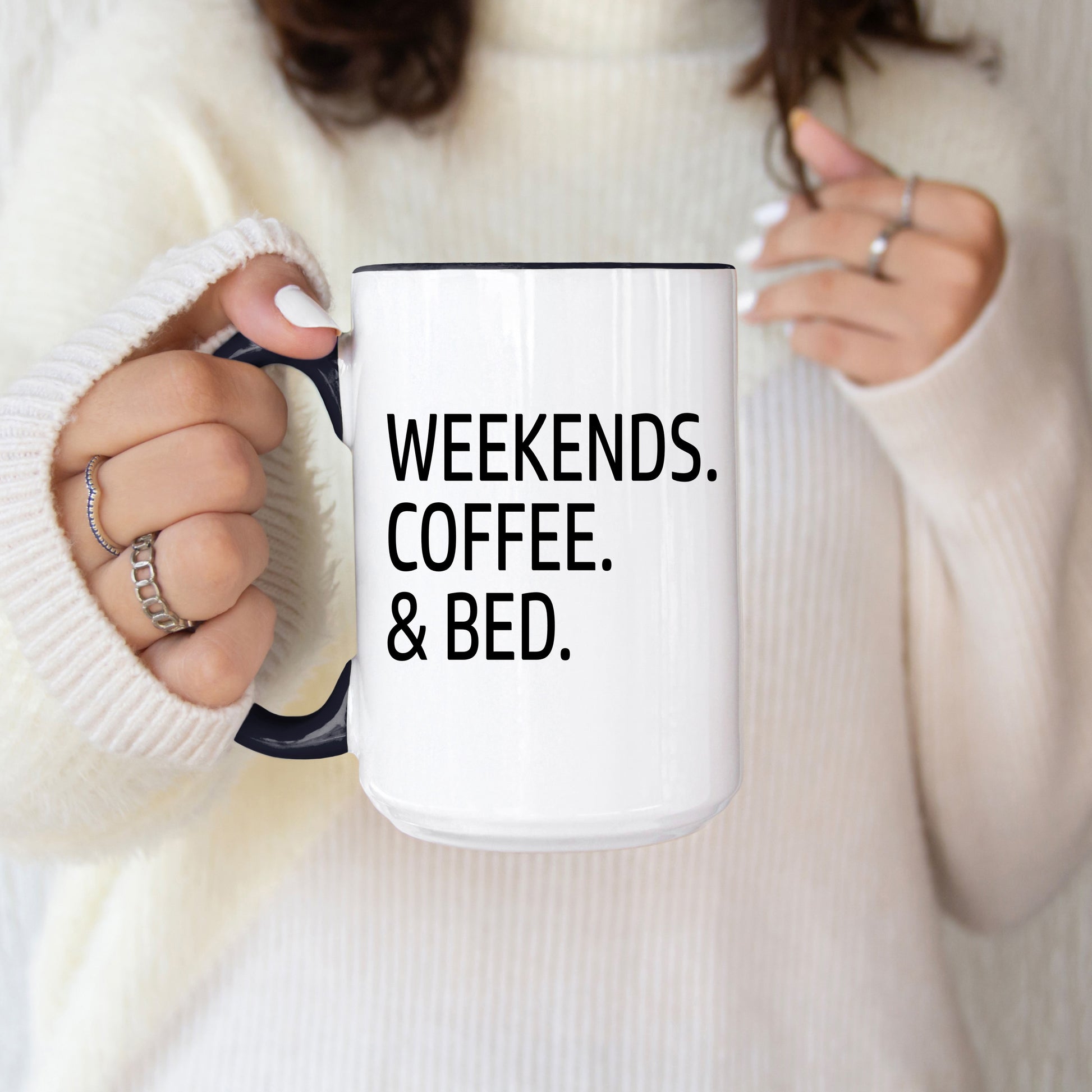 Boost your weekend vibes with our Weekends, Coffee & Bed mug. Made from durable 15oz ceramic, it's perfect for your favorite hot beverages. Get ready to snuggle up and sip in style!